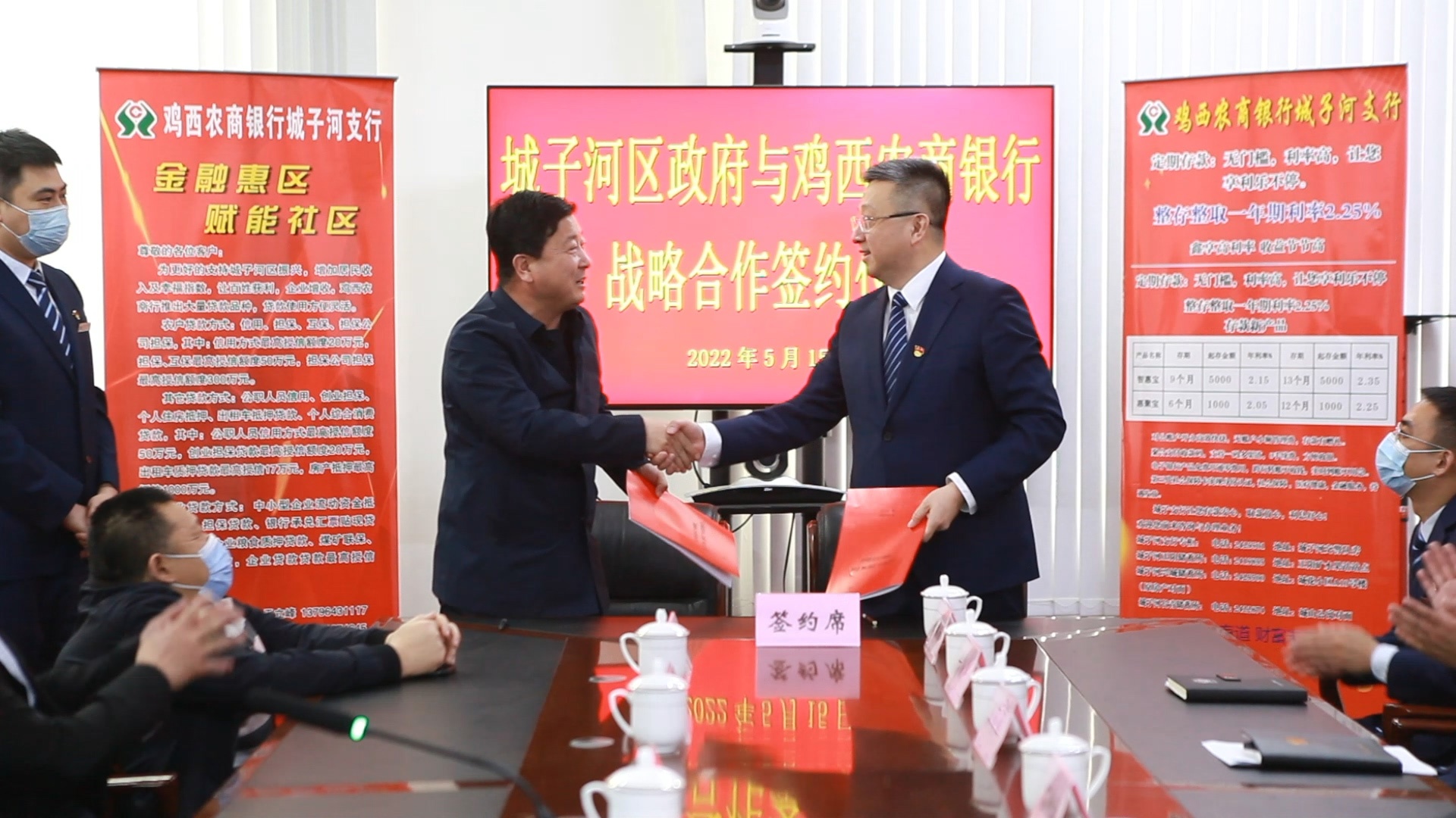 5月15日,鸡西农商银行与城子河区政府举行战略合作协议签约仪式,双方将在城子河区重点产业项目、小微企业、公共事业、农业产业及新业态等多个领域开展全面合作,积极推进地方经济社会和鸡西农商银行沟通合作、共同发展、实现共赢。