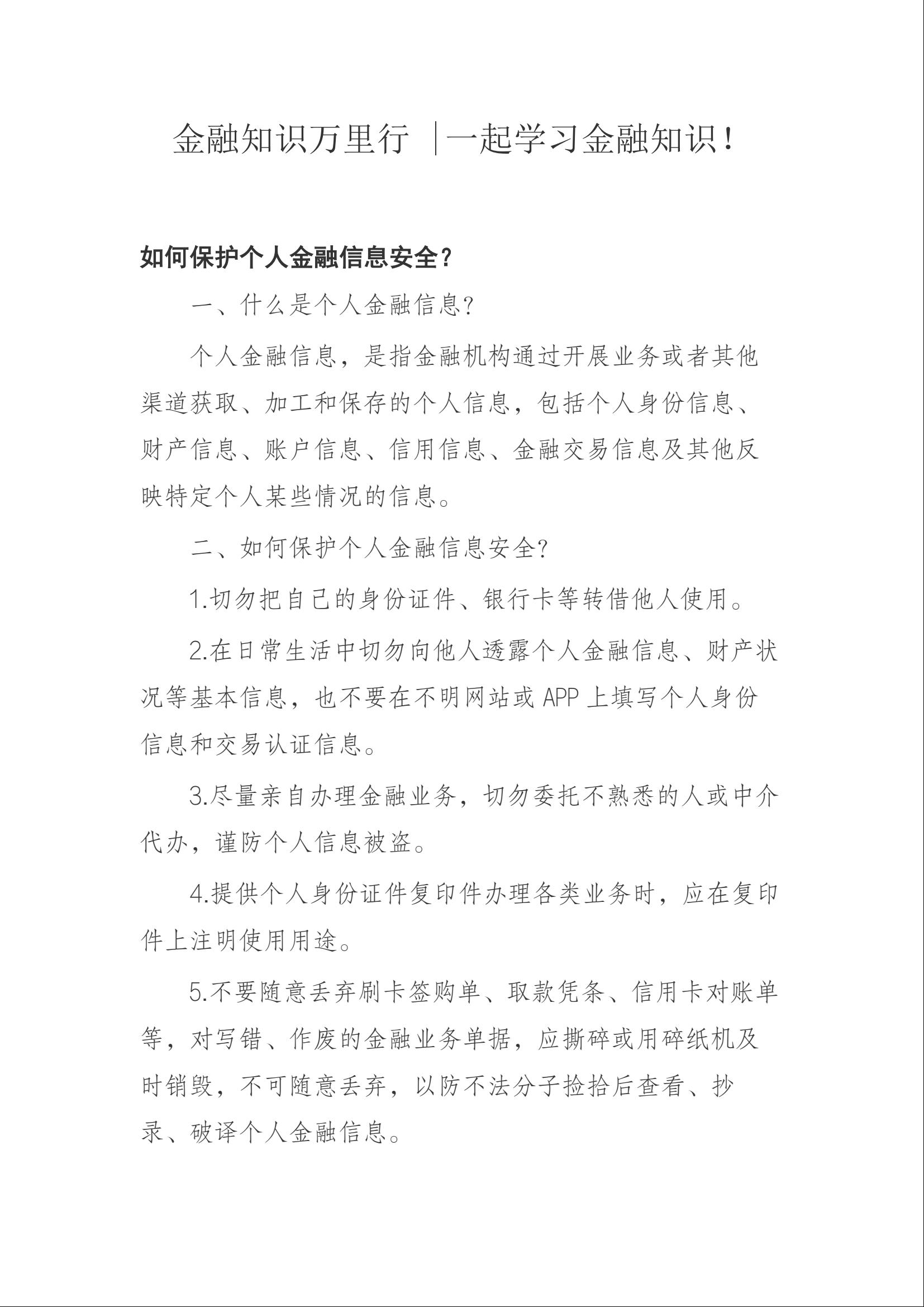 金融知识万里行 一起学习金融知识!