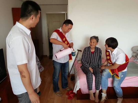 金桥、平新、成高子、安通四家信用社的志愿者利用休息时间多次到社区内的孤寡、残疾、瘫痪老人家里探望,自发地为老人们添置了日常生活用品,帮助他们整理房间,做家务,与老人们谈心唠家常。对生活半自理的老人,每逢节假日都进行电话问候,对经济困难的空巢老人,积极开展慈善援助和社会捐助,对老人的情况记录存档,解决他们的实际困难。