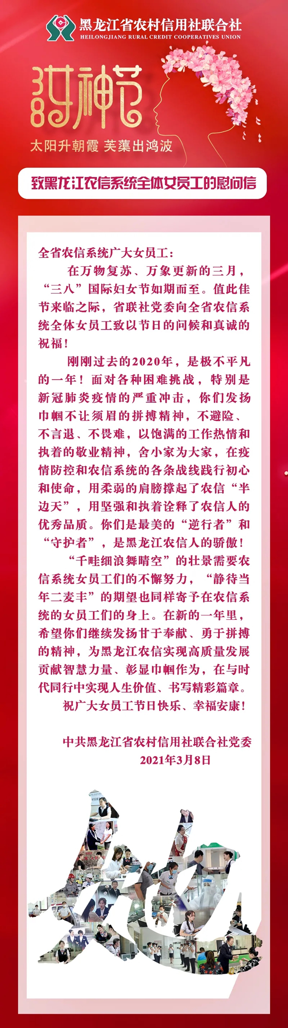 致黑龙江农信系统全体女员工的慰问信