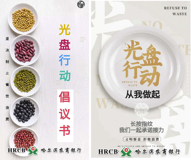 为贯彻落实习近平总书记关于制止餐饮浪费行为的重要指示,哈尔滨农商银行进一步加强宣传教育,切实培养节约习惯,坚决制止餐饮浪费、能源资源浪费的行为,在全行范围营造浪费可耻、节约为荣的氛围。
