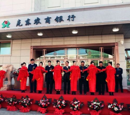 庆典仪式现场气氛隆重而热烈,嘉宾纷纷上台致辞,祝贺克东农商银行开业,并表达了美好的期许和愿望。上午9时58分,市人民银行、克东县委、齐齐哈尔市联社、齐齐哈尔银监分局克东监管站领导以及克东农商银行董事长共同为克东农商银行开业剪彩。由此,克东县农村信用合作联社成功改制为克东农商银行,正式翻开了发展历程上的崭新一页。