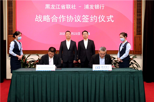 9月23日,黑龙江省农村信用社联合社(以下简称“黑龙江省农信社”)与上海浦东发展银行股份有限公司(以下简称“浦发银行”)战略合作签约仪式在上海举行。黑龙江省农信社党委书记、理事长石玉龙,浦发银行党委书记、董事长郑杨出席签约仪式,黑龙江省农信社副主任王平喜、浦发银行副行长谢伟分别代表双方签署协议。