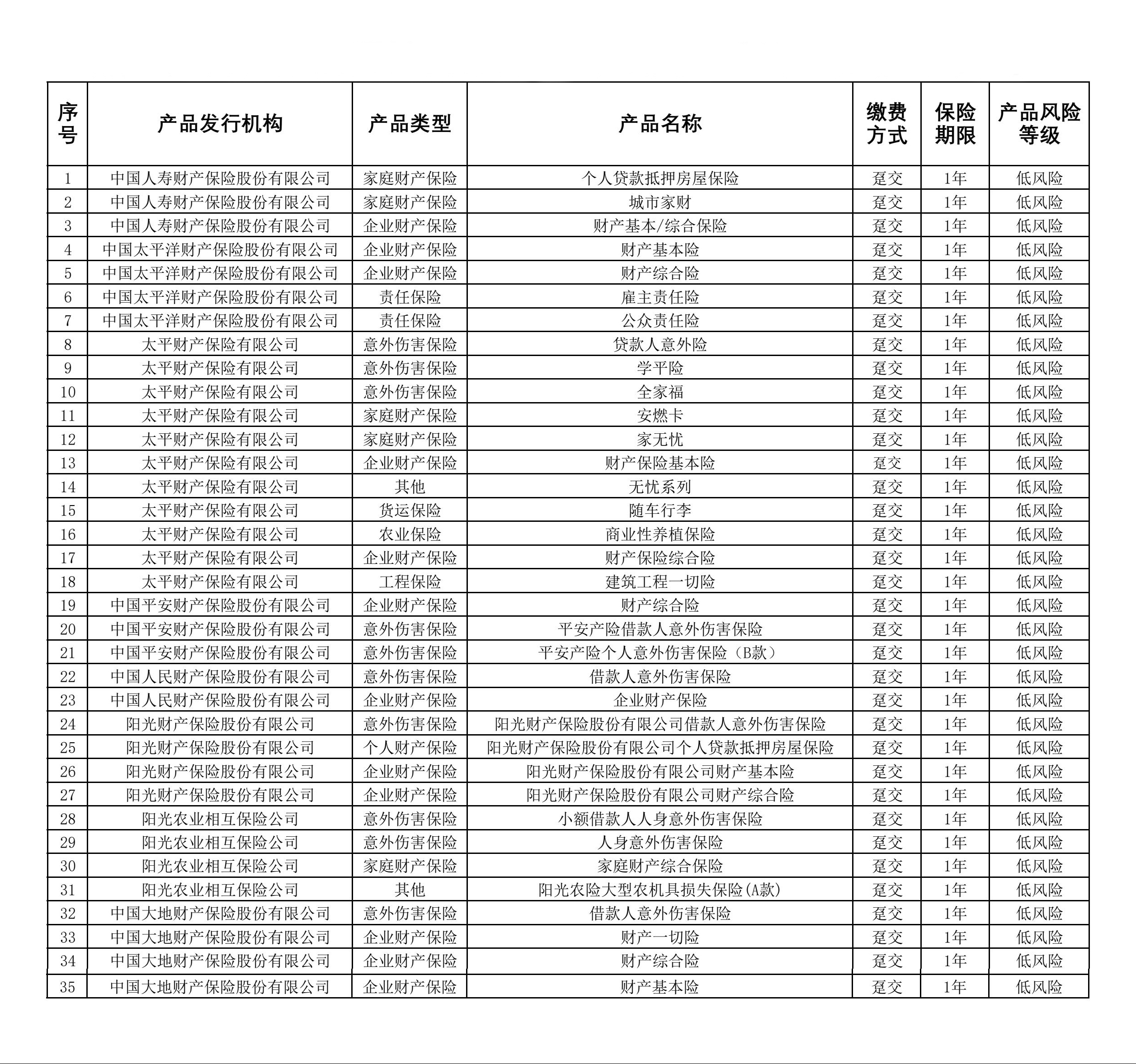 黑龙江省农村信用社代销保险产品公示清单-财险(202509)