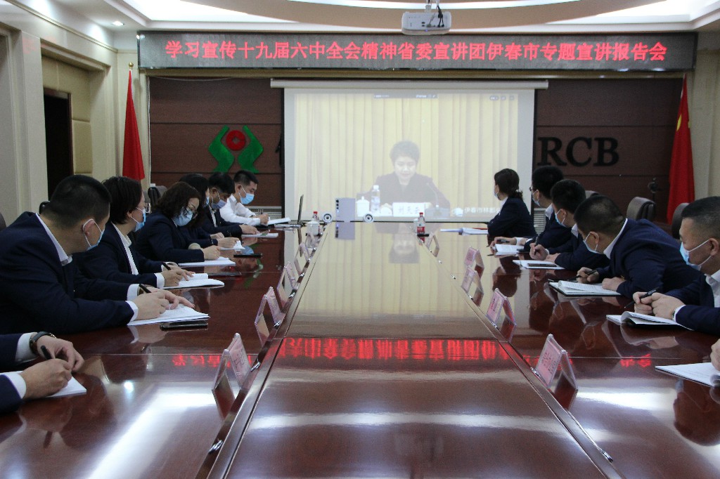 12月2日,伊春农商银行组织党员干部收听收看学习宣传党的十九届六中全会精神省委宣讲团伊春专题宣讲报告会。省委宣讲团成员、哈尔滨师范大学教授郭砾作专题宣讲报告,市委常委、宣传部长刘天云主持并作部署讲话。