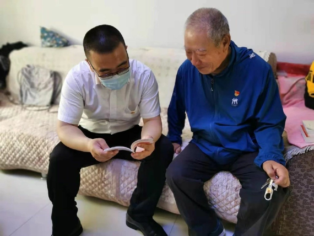 与老党员一起进行党史学习,听老党员讲述先进事迹