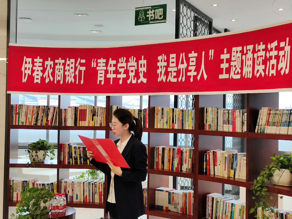 本次活动在伊春农商银行“职工书吧”举行,青年员工通过对《论中国共产党历史》《中国共产党简史》和红色经典故事等著作的诵读,系统回顾了从嘉兴南湖的一叶小舟到抗日战争的枪林弹雨;从建国初期的百废待兴到改革开放的大刀阔斧的发展历程,一同见证、感悟、分享中国共产党浴血奋战、披荆斩棘,坚强带领全国人民乘风破浪、砥砺前行的伟大征程。