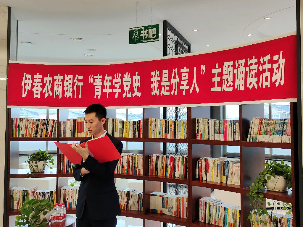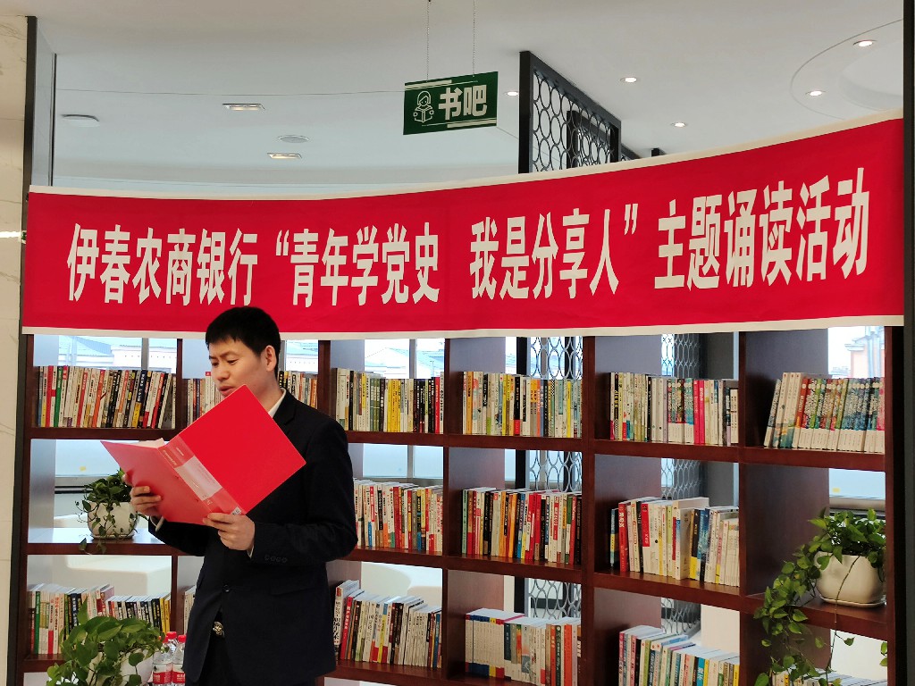 为庆祝中国共产党成立100周年,大力传承红色文化,伊春农商银行结合党史学习教育活动安排,以“世界读书日”为载体,围绕“青年学党史·我是分享人”的主题,组织青年党员干部开展红色经典诵读活动,系统回顾了党的历史,深切缅怀革命先烈,深入汲取奋进力量。